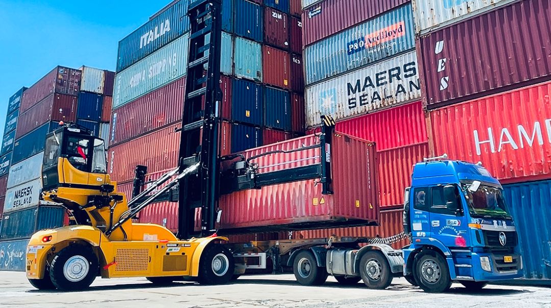 2019年,好体育综合app下载自主研发的首台电动堆高机在厦门港率先投入使用。截至目前,设备已安全作业超过1万小时,作业箱量超过20万TEU,电耗仅0.7元/TEU,能耗相比燃油设备下降70%,节省维保费用20%,实现大幅的减排降本。