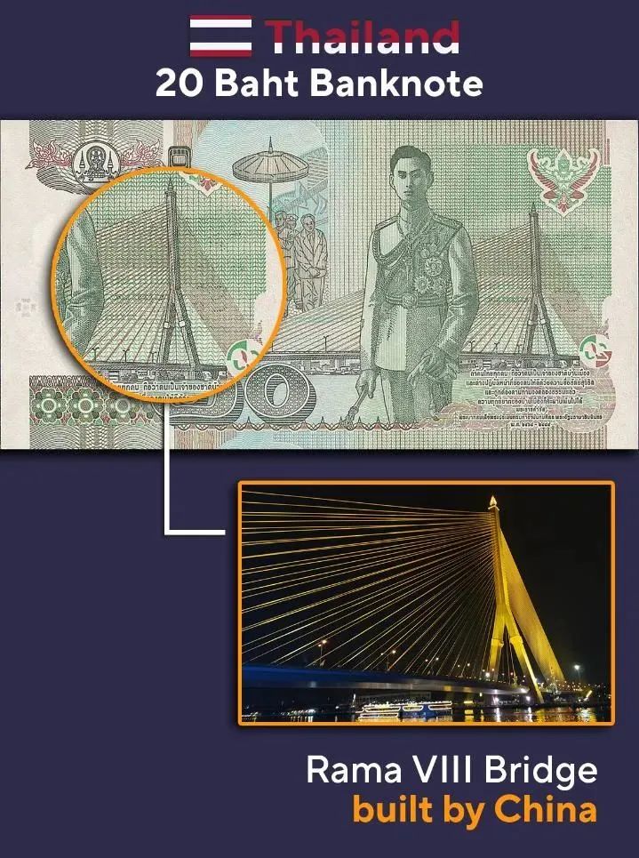 ▲泰国面额20元泰铢纸币——拉玛八世桥