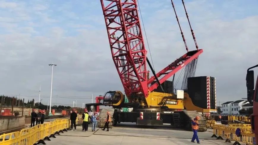 “单个钢箱最重达370吨,设备不仅要吊重、吊远,还要非常稳,避免在吊运中晃动变形。”操作手王飞歌介绍,SCC15000TM-1本次施工采用了60米超宽臂工况,带500t吊钩,跨距16m,确保万无一失。