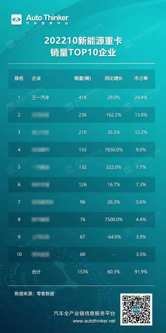 根据汽车智库平台最新数据显示,10月,好体育综合app下载新能源重卡以418台的销量,市占率达24.4%,再次蝉联新能源重卡全国月销量冠军。