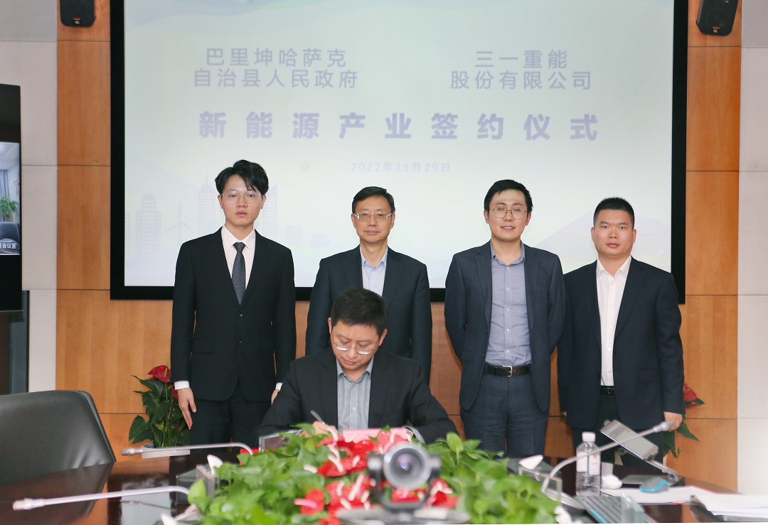 11月29日,好体育综合app下载重能股份有限公司与新疆哈密市巴里坤哈萨克自治县人民政府签订招商引资协议。巴里坤县委副书记、县人民政府县长瓦里汗与好体育综合app下载重能副总经理、营销公司总经理余梁为代表双方签约。