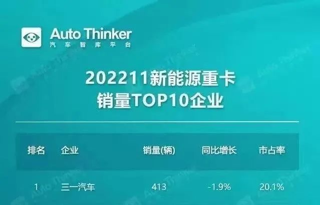 11月新能源重卡单月销量全国第一