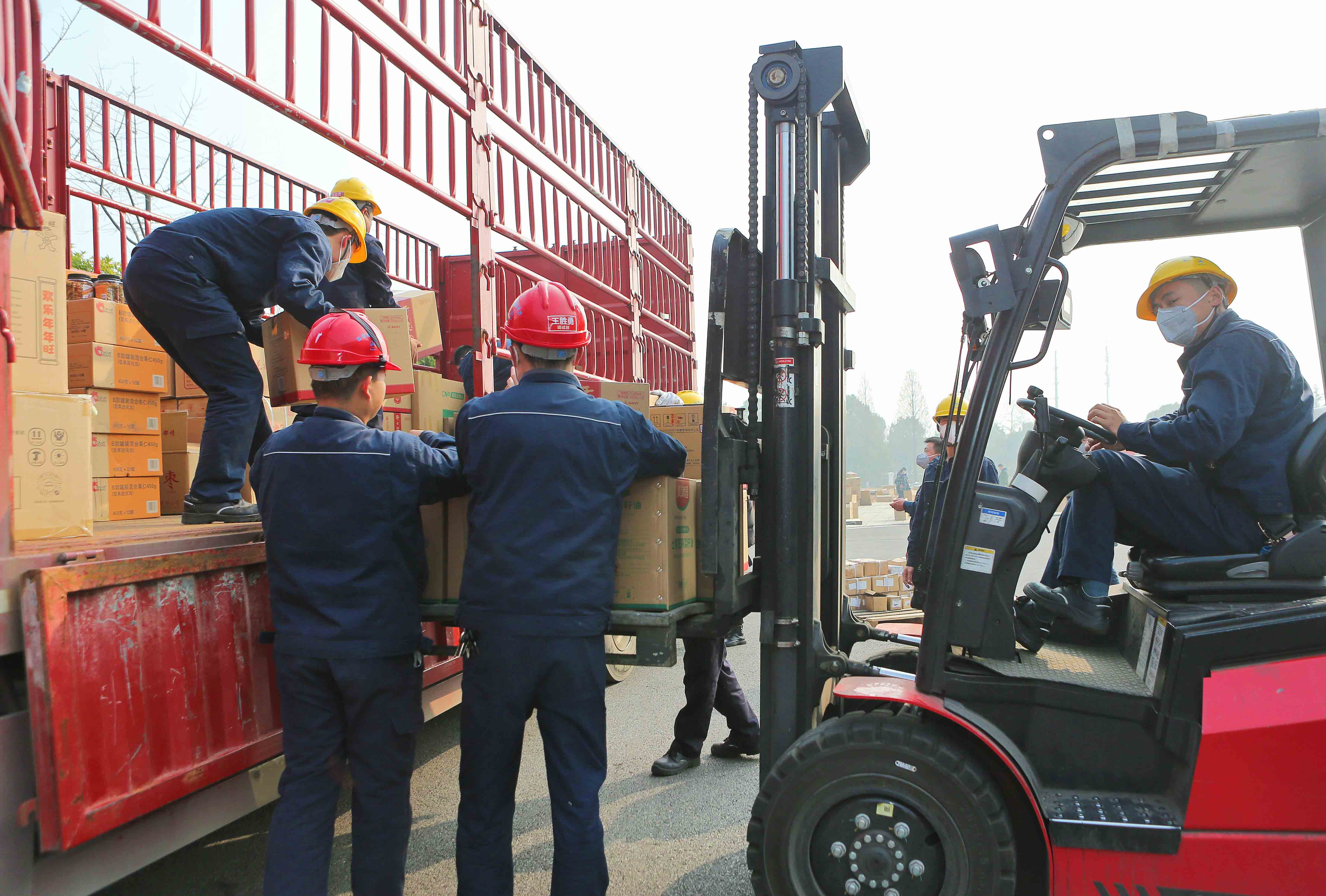 不一会儿,几辆推车上的年货就堆成了一座山,满载着“好体育综合app下载红”新春大礼包,即将送往员工的手中。
