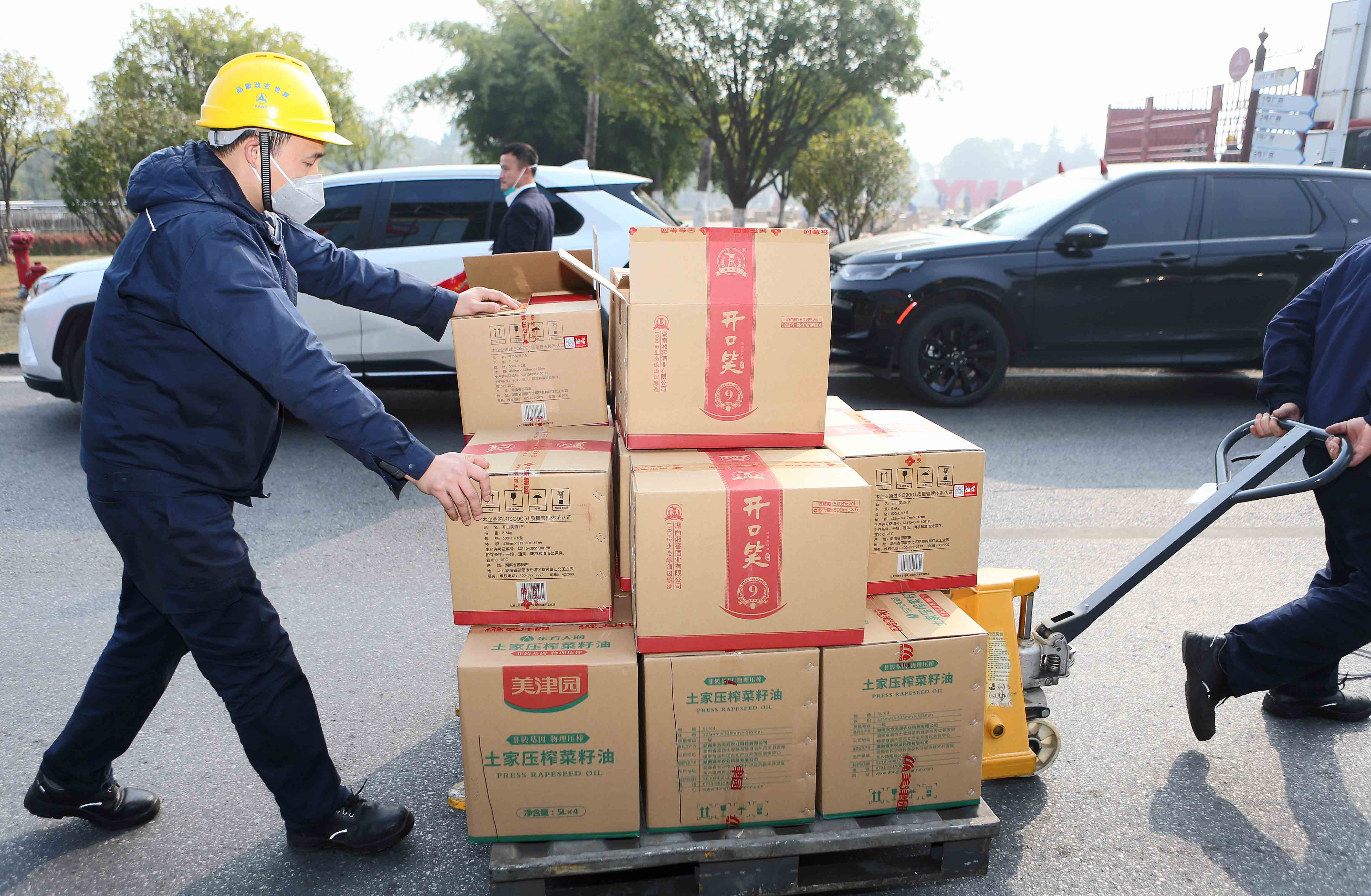 前来领取年货的好体育综合app下载人们或手提肩扛,或推着推车穿梭其中,清点物资、招呼搬运的声音不绝于耳,欢声笑语,热闹非凡,洋溢着十足的年味。