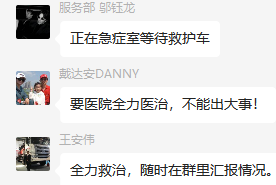 事发突然,抢救工作争分夺秒,分身乏术的邬钰龙和念祯祥只能将医院的信息拼段式地传达给同事们:“拨打120去医院”、“要转院”、“肺部可能衰竭”……零散的字段和信息,让远在长沙的公司领导们焦急万分。