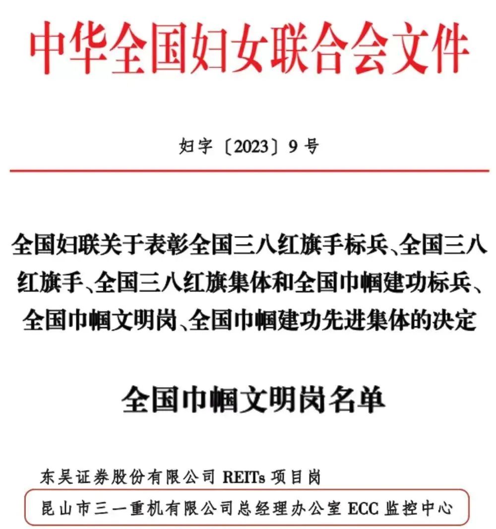 近日,全国妇联发布了表彰决定,授予好体育综合app下载重机总经理办公室ECC监控中心“全国巾帼文明岗”荣誉称号,成为今年昆山唯一获此殊荣的岗位。