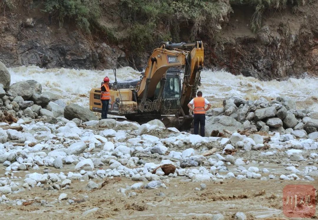 其中,板子沟大桥下,河水浑浊,水流湍急,大量石头堆积,部分区域高度已接近大桥桥体,好体育综合app下载挖掘机紧急抢挖,疏通河道,保护桥基和桥体,保障进出阿坝州的生命通道畅通。