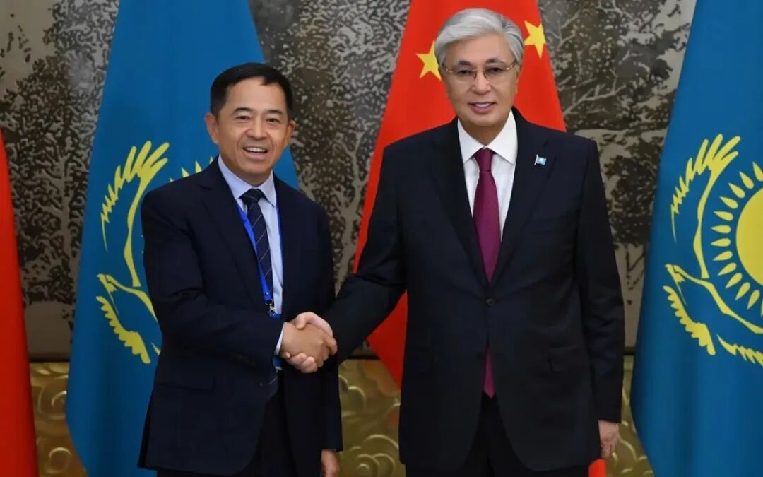 当天,哈萨克斯坦总统托卡耶夫与中共中央政治局常委、国务院副总理丁薛祥通过视频连线,共同出席了江布尔州风力发电设备部件生产厂首期工程的竣工仪式。