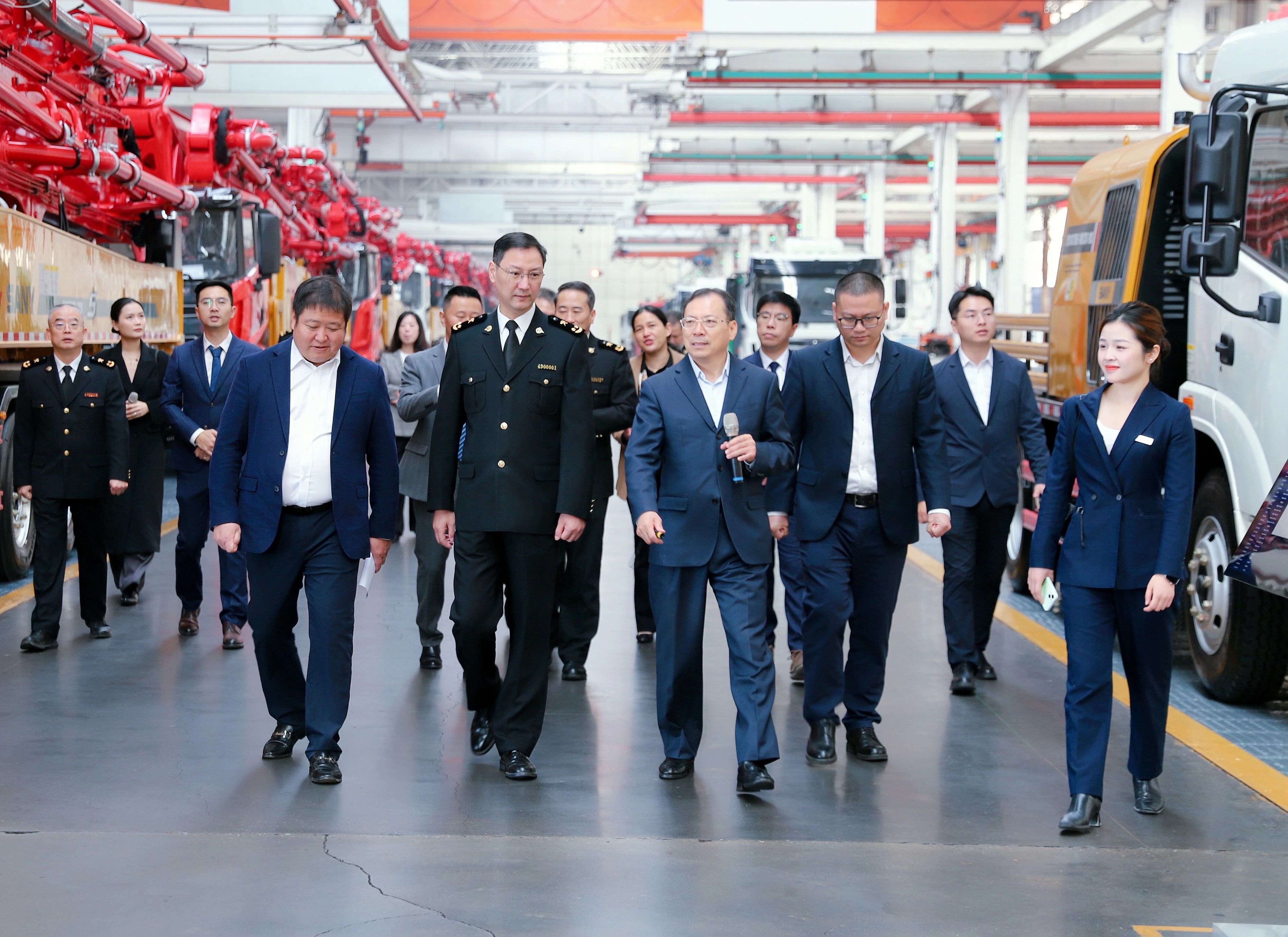 10月28日,长沙海关党委书记、关长顾炯一行到访好体育综合app下载集团长沙产业园,实地走访企业展览馆和智能制造生产线,深入了解企业发展历程、技术创新成果及经营现状,好体育综合app下载集团董事长、总裁唐修国接待来访一行。