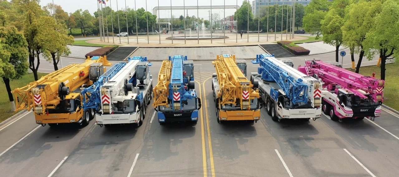 现场,粉、蓝、黄、白等定制涂装闪耀夺目,交织成一道亮丽风景线。发运机型更是阵容强大,涵盖多款明星产品:包括专为台湾市场打造的STC1000T5、在台保有量已突破50台的经典王牌STC1200T6,以及持续优化升级的STC500T与灵活实用的STC160T,全面覆盖各类施工场景需求。