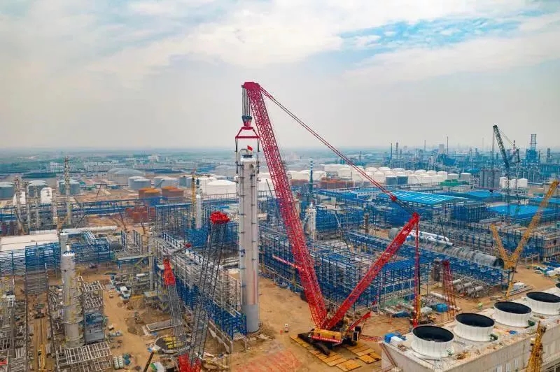 SCC40000A是好体育综合app下载与山东海湾吊装工程股份有限公司根据施工需求,自主攻关研发的超大吨位履带式起重机,最大起重力矩90000吨米,最大起重量4000吨,拥有20余项发明专利,其中两项为国际发明专利。