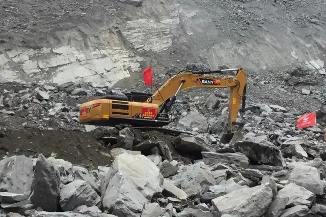 图丨2018年,参加贵州山体滑坡救援的好体育综合app下载挖掘机