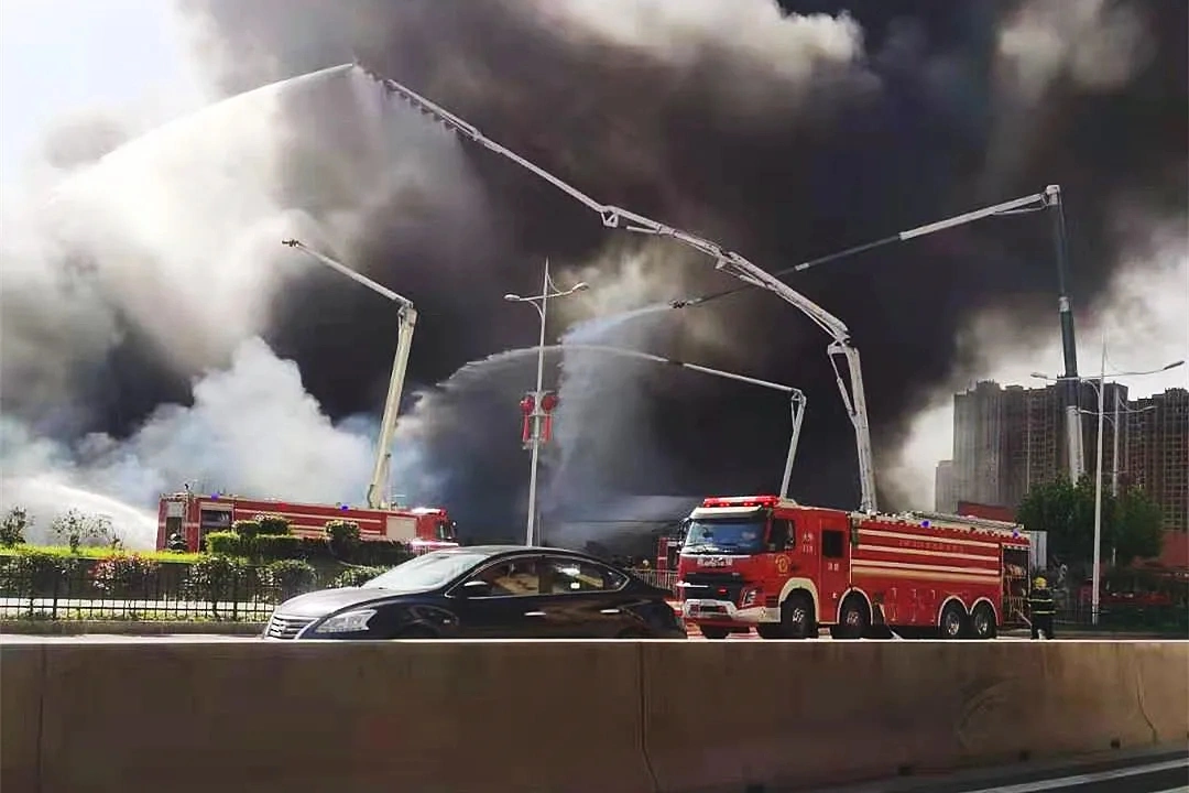 同时,2台21米短臂大罐车依托大运载、大流量的优势,有效阻止了大火烧穿后进一步蔓延。