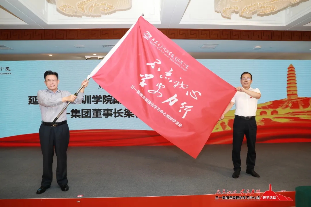 开班仪式后,延安干部培训学院副院长王延兴代表学院,向梁稳根董事长授予了培训班班旗。