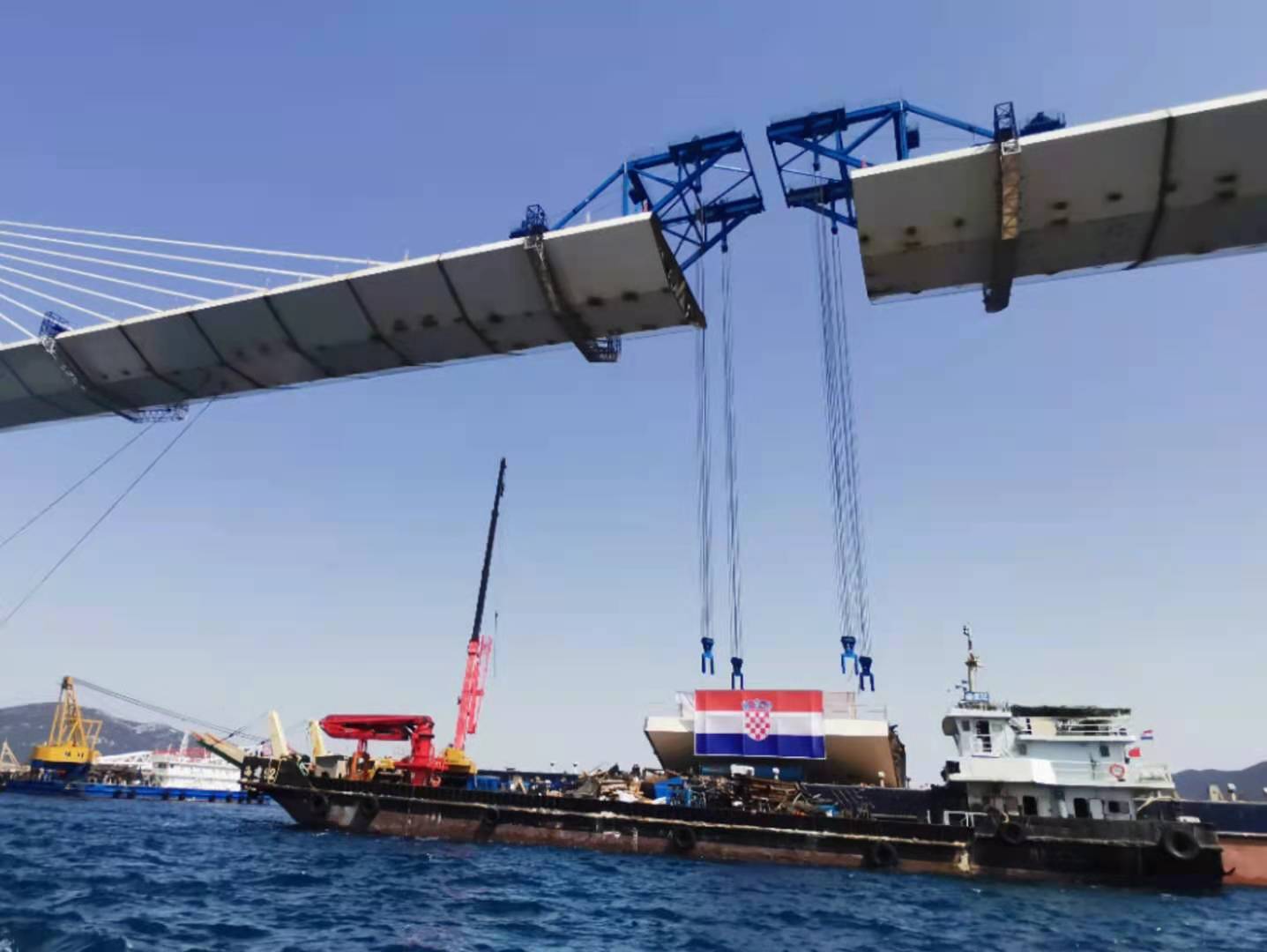 7月28日,在克罗地亚总理普连科维奇的见证下,在多家欧洲媒体的直播镜头中,随着最后一块钢箱梁由好体育综合app下载起重机精确吊装至指定位置,宣告历时930天建设的佩列沙茨大桥成功合龙,克罗地亚民族20年的夙愿终得实现。
