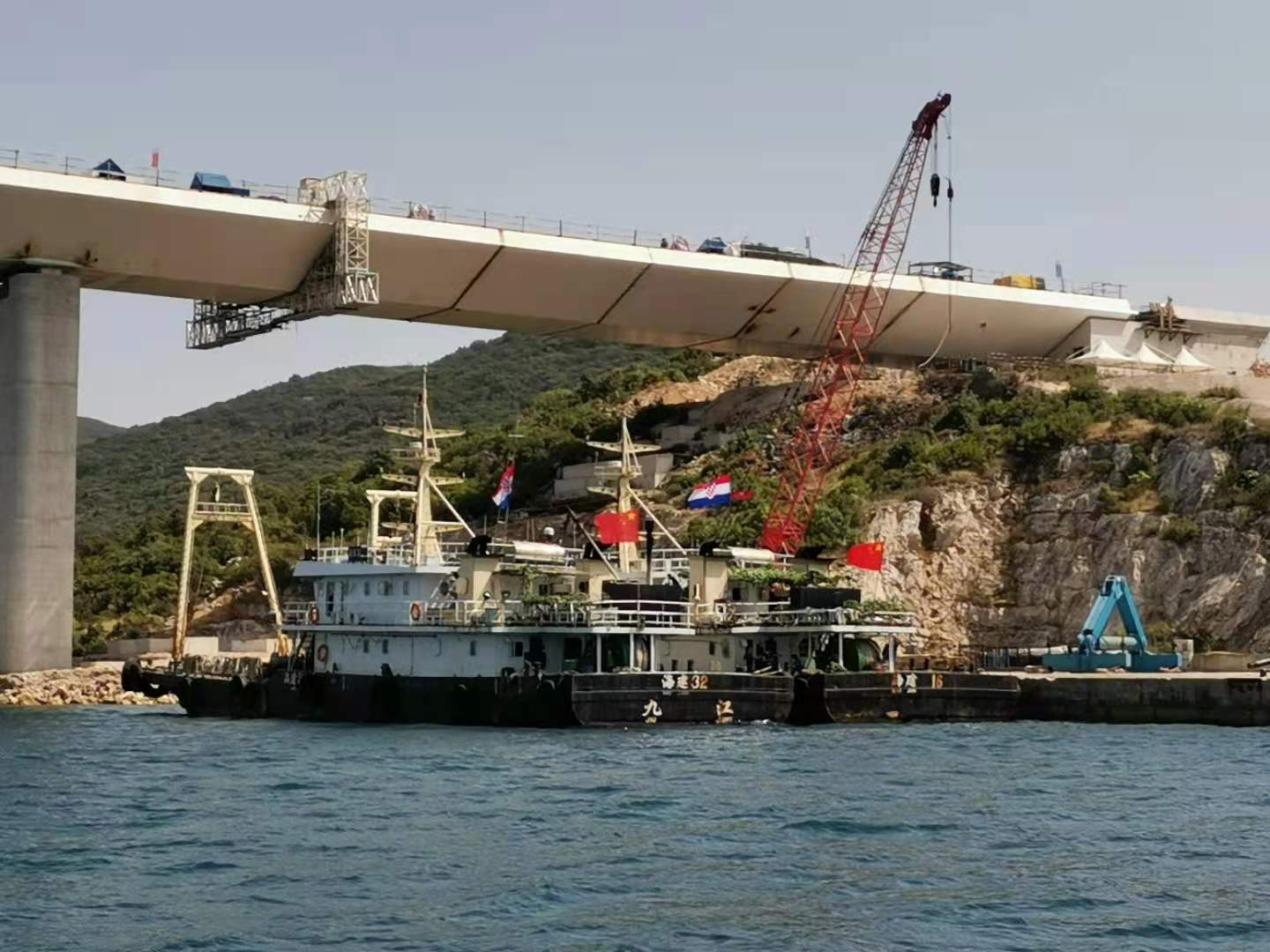 7月28日,随着跨海大桥的合龙,许多克罗地亚人走上街头庆祝。在大型装备的助力下,中国建设者用不到3年时间就建起了这座雄伟工程。