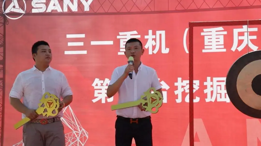 在热烈的掌声中,首批挖掘机产品的购买者——何宜霖与程航宇上台接过设备金钥匙。