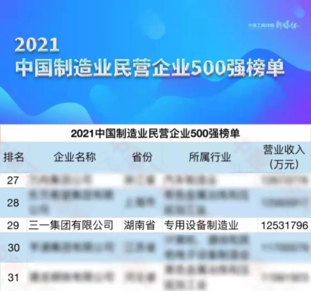 9月25日,由全国工商联主办的2021中国民营企业500强峰会在长沙举行。会上,全国工商联发布了2021中国民营企业500强、2021中国制造业民营企业500强等荣誉榜单,好体育综合app下载集团强势入围两大榜单,再获工程机械行业“双科冠军”。