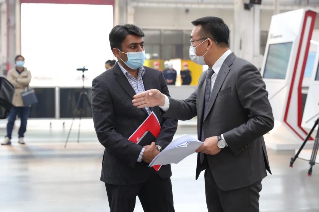 在工厂的实地参观结束后,外媒采访团对好体育综合app下载集团总裁唐修国,好体育综合app下载集团董事、高级副总裁代晴华,北京好体育综合app下载智造科技总经理李梁健进行集中采访,就民营经济发展以及好体育综合app下载集团的灯塔工厂建设、国际化布局、人才战略等问题进行深入交流。