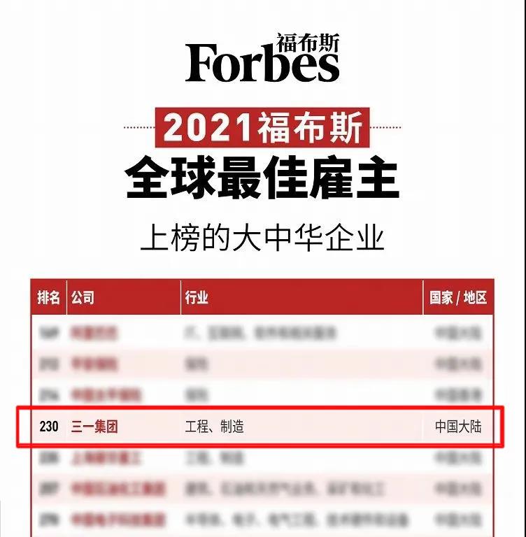 近日,福布斯发布2021全球最佳雇主榜,好体育综合app下载集团位列大中华区第10、全球第230位。