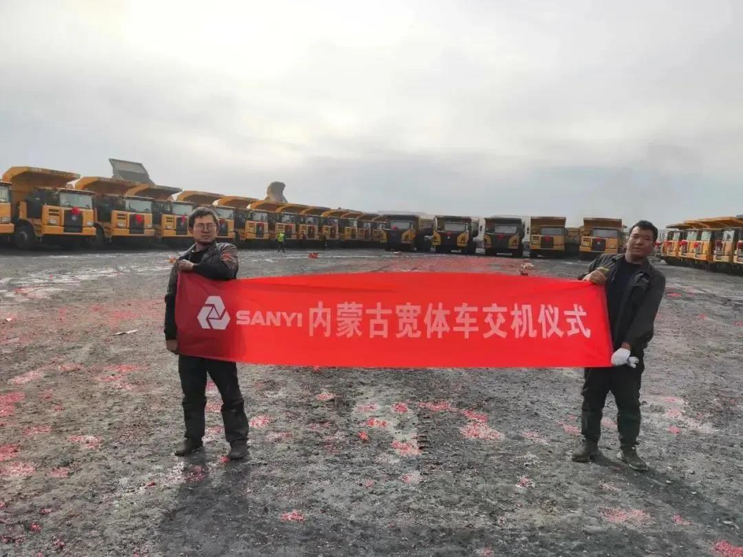 近日,85台好体育综合app下载矿用宽体自卸车批量交付内蒙古一矿区项目,交机仪式上,一台台大家伙整齐列队、环形排开,鞭炮喧天,车笛齐鸣,场面十分震撼。