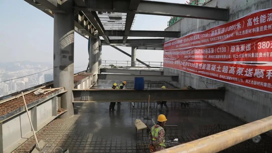 施工当天,“世界泵王”再次实力助攻,一次性完成380米超高层混凝土泵送,助力贵阳中心成功封顶,携手施工方创造了中国建筑史上的又一个奇迹。