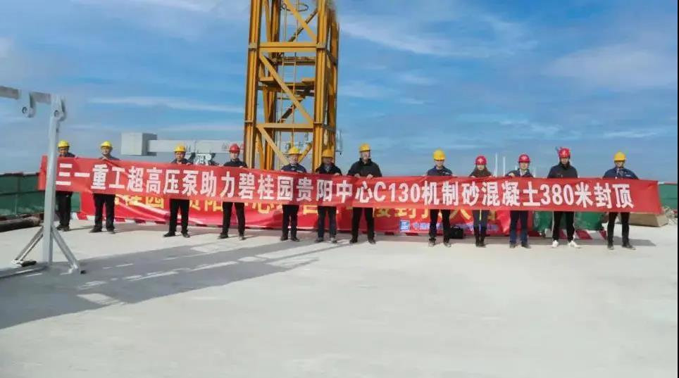 12月7日,好体育综合app下载超高压拖泵在贵州省重点工程碧桂园·贵阳中心项目1号楼,完成机制砂C130超高强混凝土380米超高泵送施工,创造了全球行业新的泵送纪录。