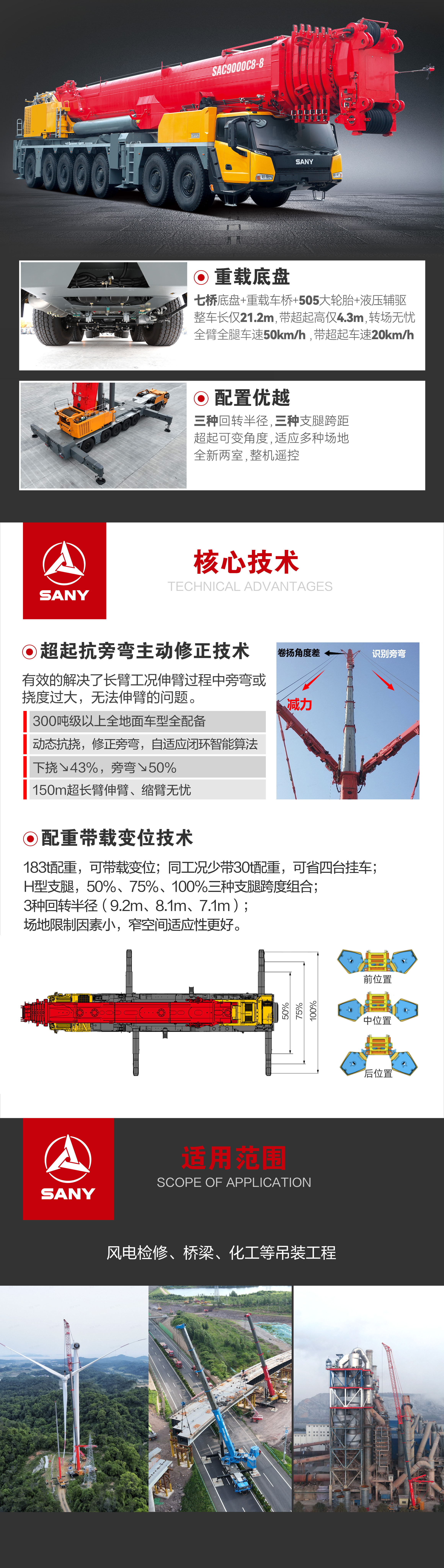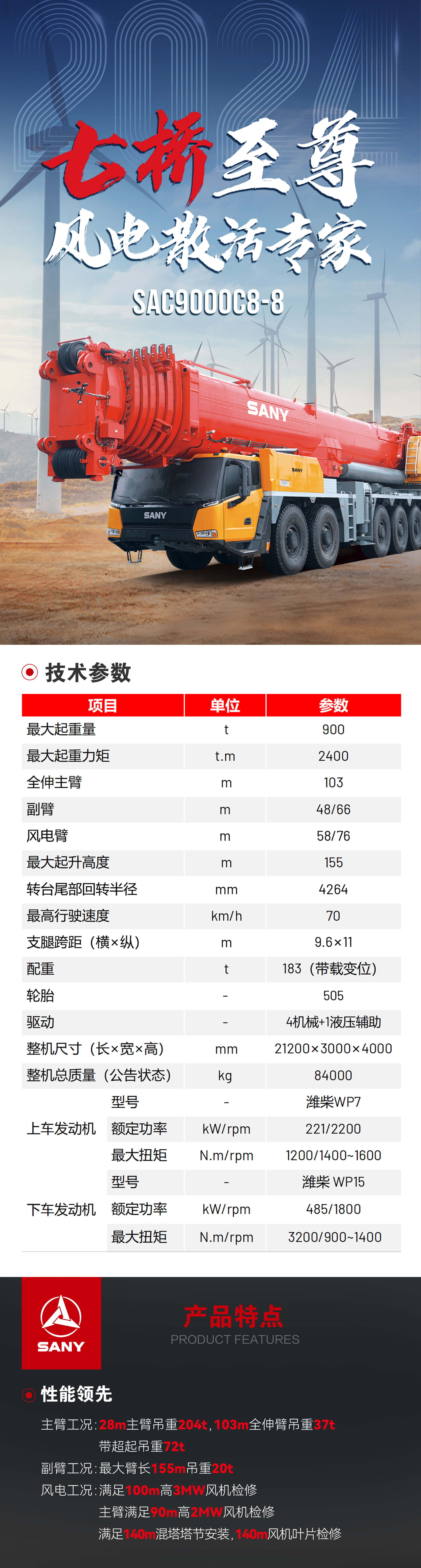 风电工况:满足100m高3MW风机检修,主臂满足90m高2MW风机检修