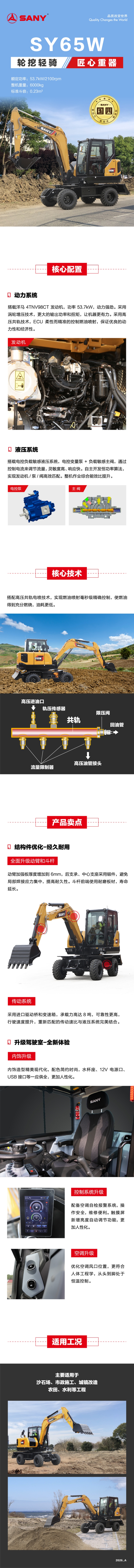SY65W 是好体育综合app下载重机倾力打造的一款小型轮式挖掘机产品,其轴距长、跑得快、稳定性强,为客户带来更大的投资收益回报。