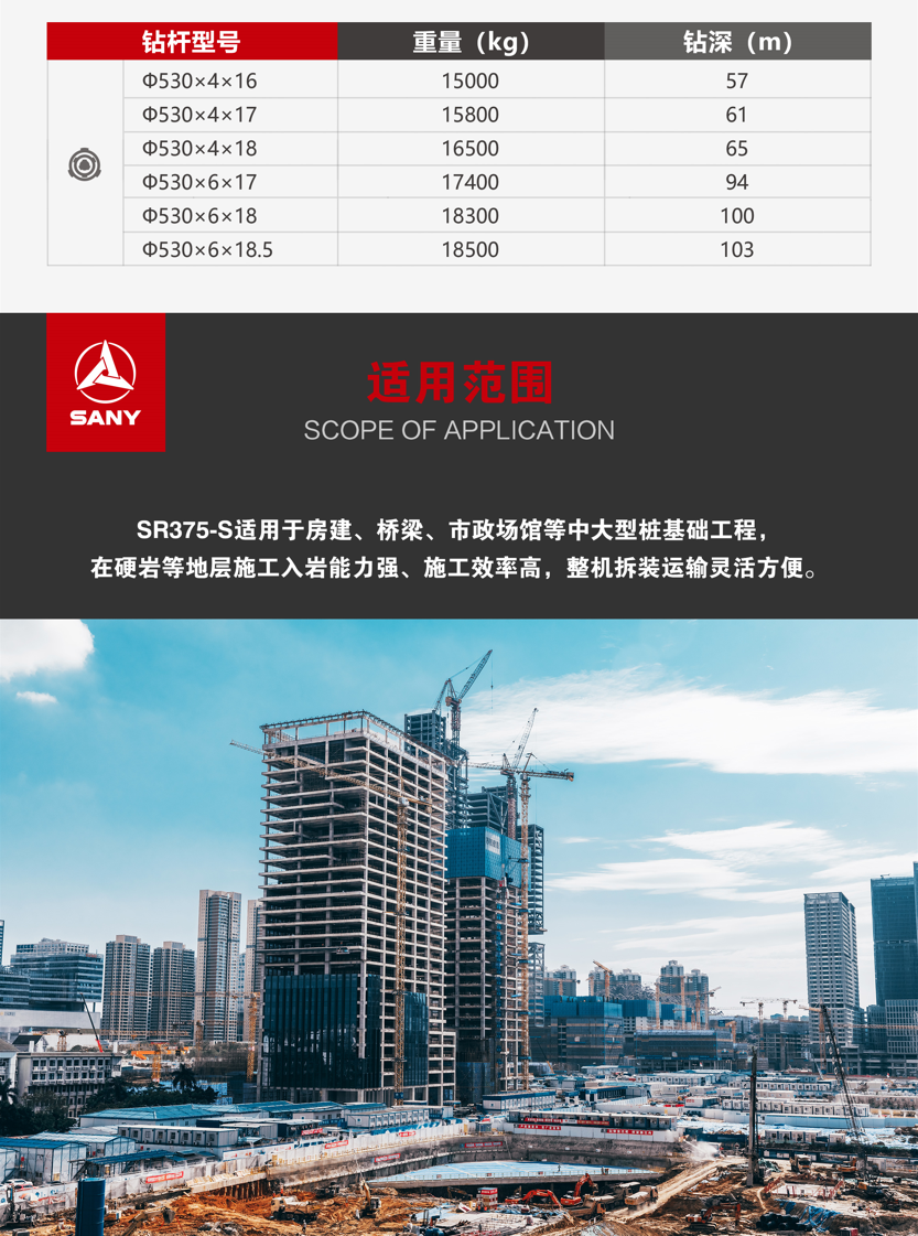 SR375-S适用于房建、桥梁、市政场馆等中大型桩基础工
