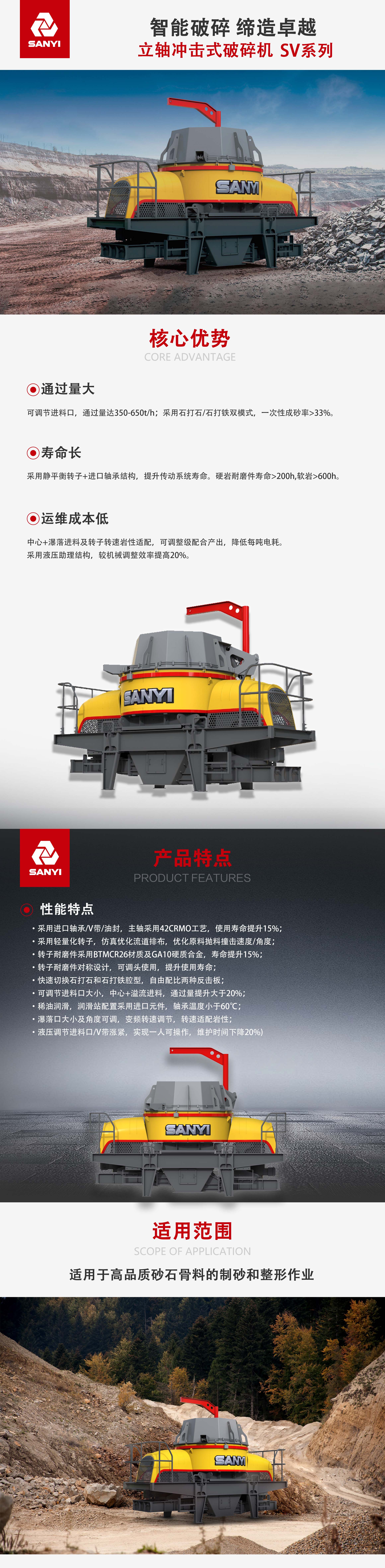 通过量大:可调节进料口,SV8210通过量达350-650t/h,领先行业8%。采用石打石/石打铁双模式,一次性成砂率>33%,提升3个百分点。