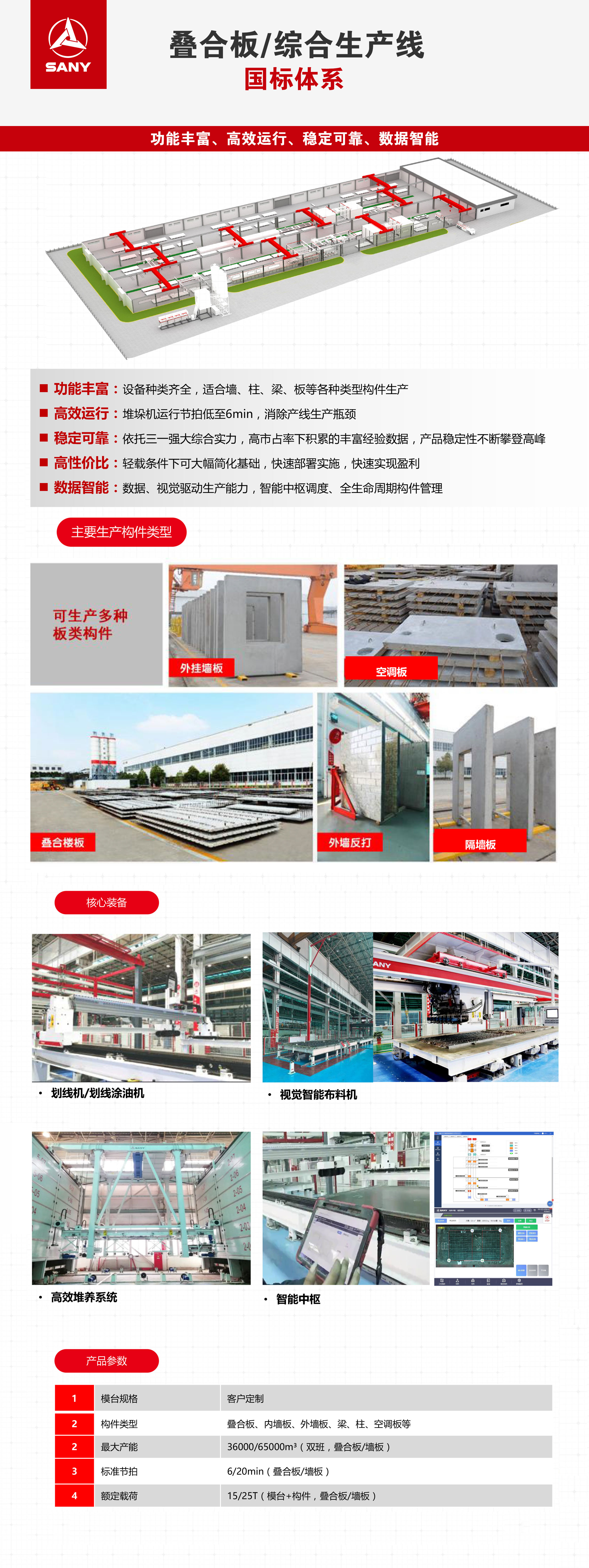 功能丰富:设备种类齐全,适合墙、柱、梁、板等各种类型构件生产