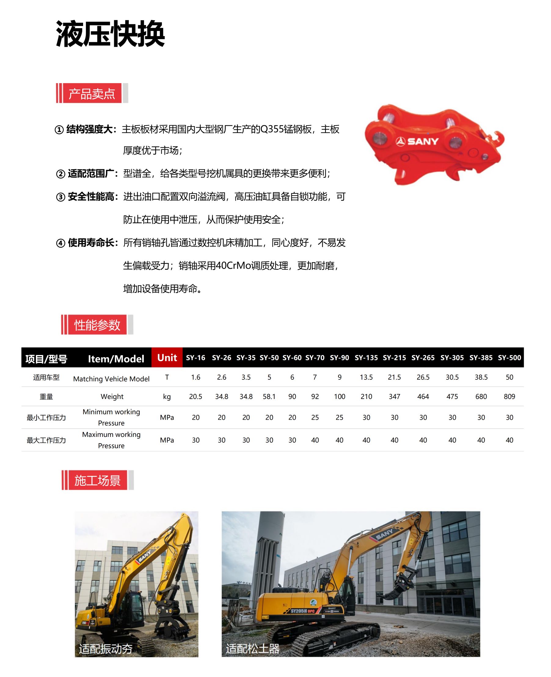 ② 适配范围广:型谱全,给各类型号挖机属具的更换带来更多便利;