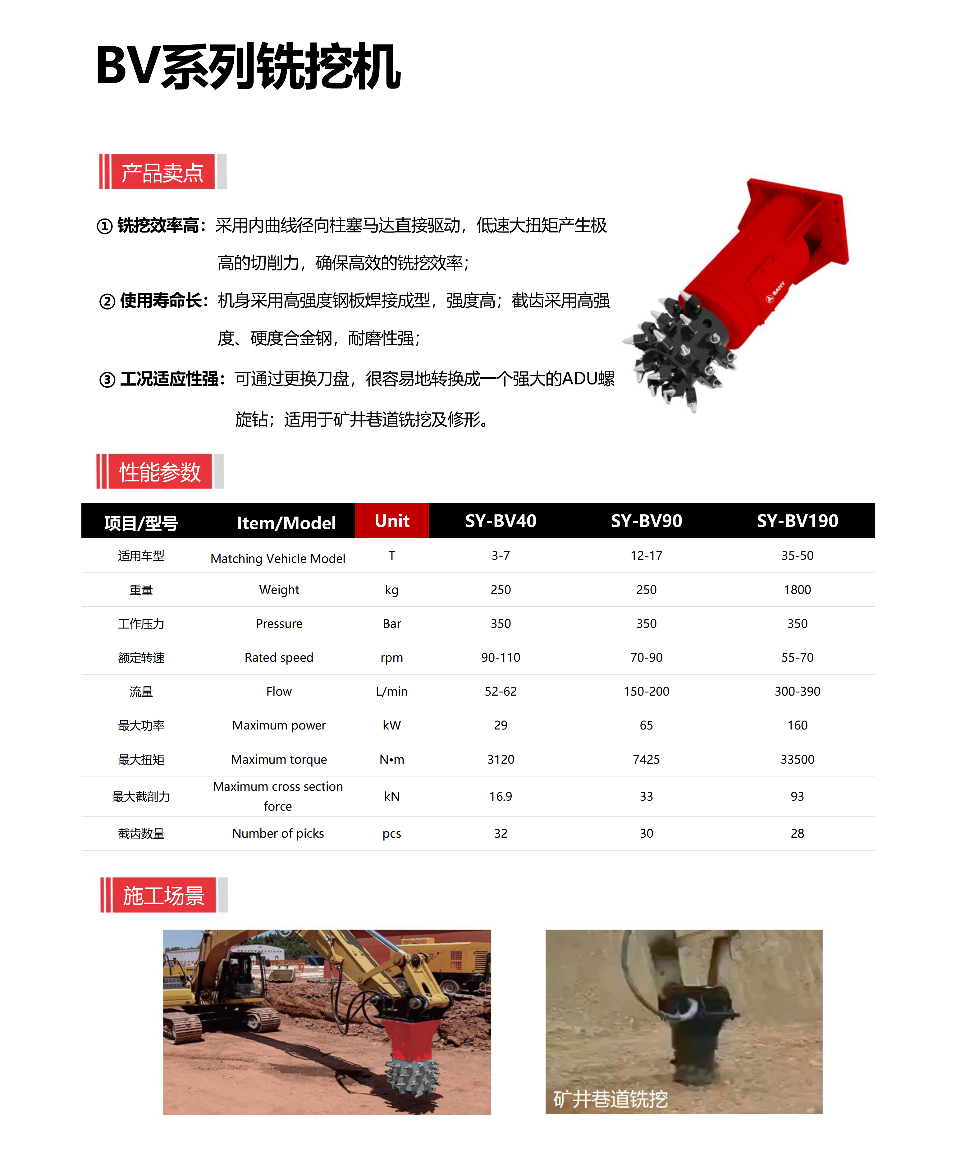 ① 铣挖效率高:采用内曲线径向柱塞马达直接驱动,低速大扭矩产生极高的切削力,确保高效的铣挖效率;