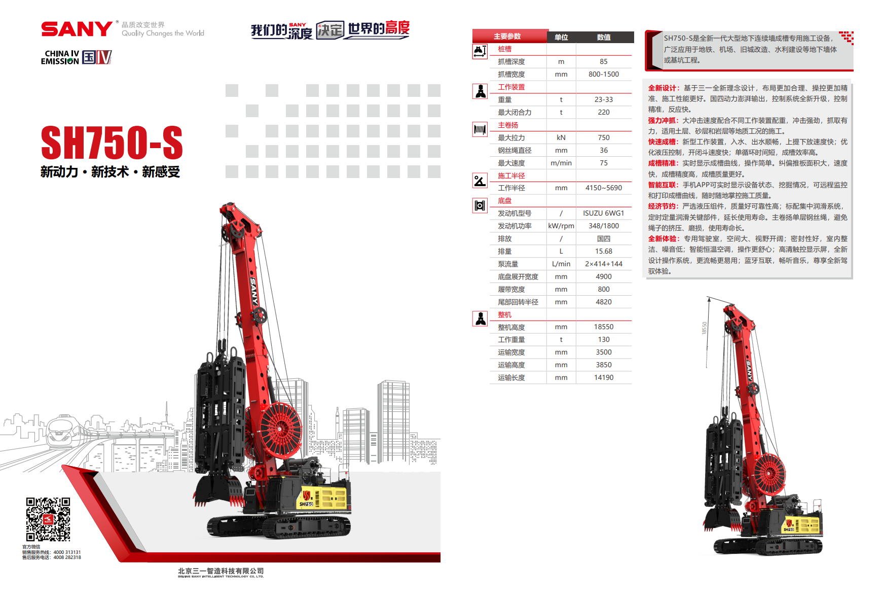 SH750-S是全新一代大型地下连续墙成槽专用施工设备,广泛应用于地铁、机场、旧城改造、水利建设等地下墙体或基坑工程。