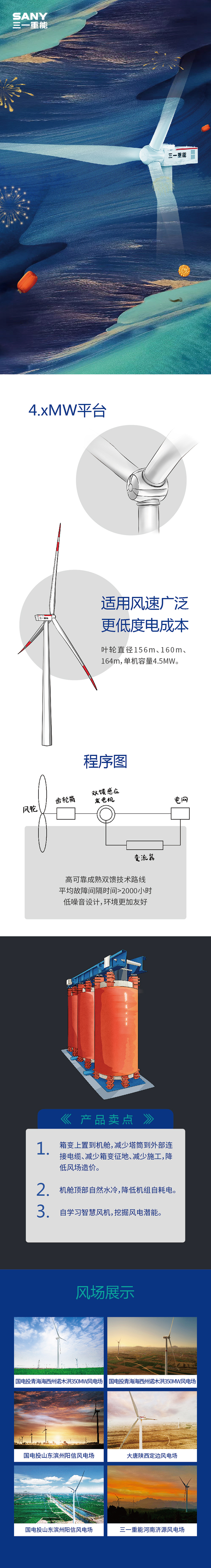 机舱顶部自然水冷,降低机组自耗电。自学习智慧风机、挖掘风电潜能。